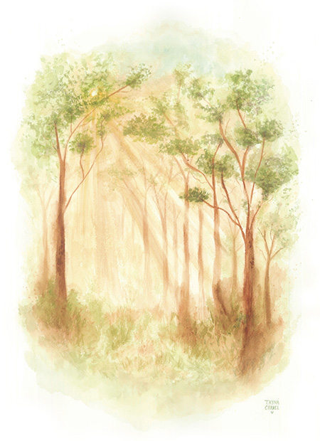 O lançamento Carvalho Amanhecer foi inspirado neste Instante da Floresta. Uma pintura de aquarela pelo olhar da aquarelista, Júlia Lustosa.