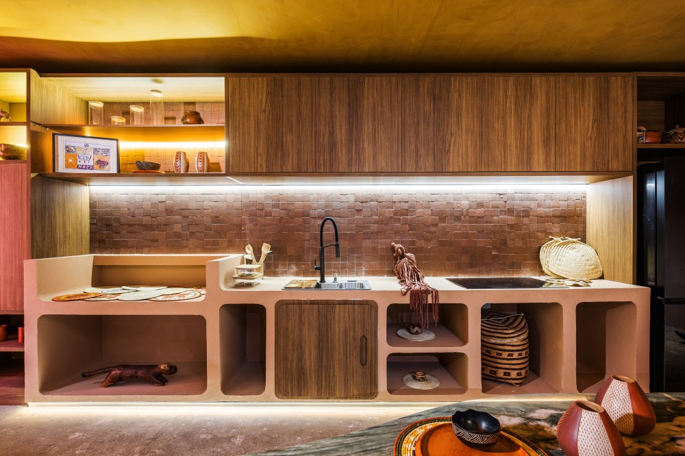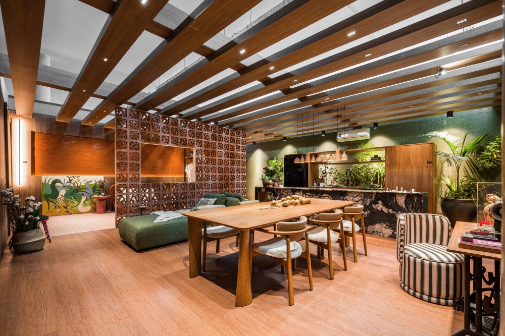 O Nordeste apresenta uma tendência pelo uso de madeiras mais intensas e com veios evidentes, que adicionam cor e personalidade aos ambientes. No Norte, esse comportamento se repete: predominam tons mais fortes e materiais com maior expressão visual. Segundo a supervisora de produtos, Gabriela Barros, de forma geral, essa preferência pelo MDF Carvalho Guaraná está muito ligada às regiões de clima mais quente, onde cores vivas e madeiras marcantes ganham protagonismo. “Claro, o perfil de cada arquiteto influencia bastante nas escolhas, mas na Bienal os profissionais buscaram justamente evidenciar essa diversidade: valorizar as identidades regionais, destacando no Norte e Nordeste o uso de cores intensas e materiais mais expressivos”, salientou.