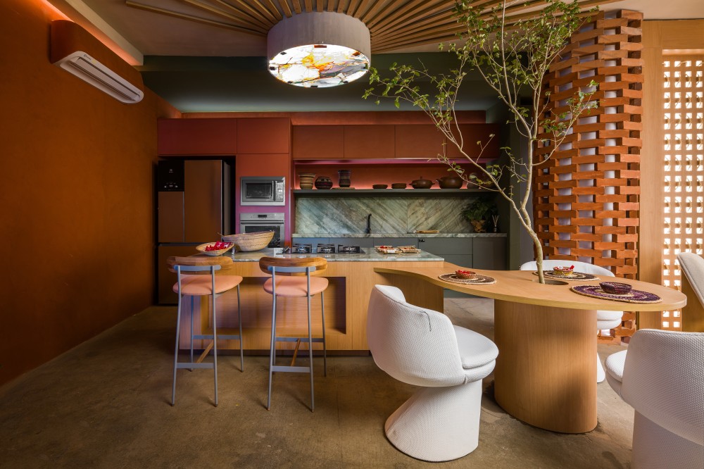 Entre os diversos elementos que chamam a atenção na mostra, a curvatura nos móveis se destaca como um dos principais recursos estéticos. Presente em diferentes ambientes e propostas, o uso de linhas curvas reforça uma linguagem mais fluida e acolhedora, evidenciando uma mudança importante no design contemporâneo.